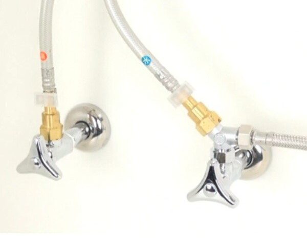 シンク下が狭く、水栓金具を取り付ける際に給水ホースの座屈が心配になる現場では、「片ナット45°エルボ(商品コード:SKKE45-13B)」と「片ナット45°チーズ(商品コード:SKKT45-13B)」がオススメです。どちらも給水ホースを緩やかにカーブさせることができるので、座屈によるトラブルを回避できます。また、「片ナット45°チーズ」は、その特徴に加えて分岐をさせることができるので、食洗器やビルトイン浄水器などを増設したい場合にオススメです。