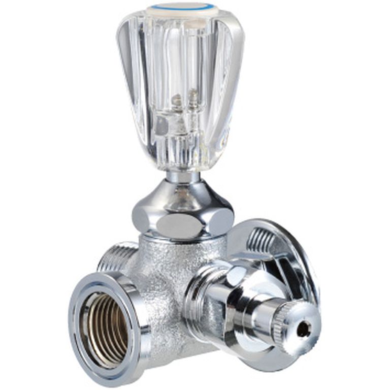 バルブが外付けタイプの昭和レトロな分岐水栓です。止水栓と分岐水栓が一体となった他の分岐水栓とは異なり、分岐する向きを施工時に自由に変えることができます。